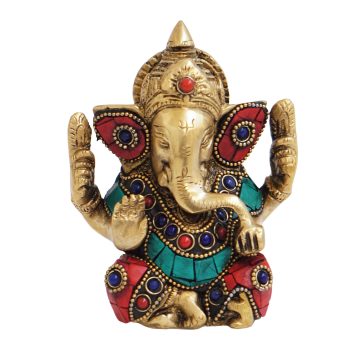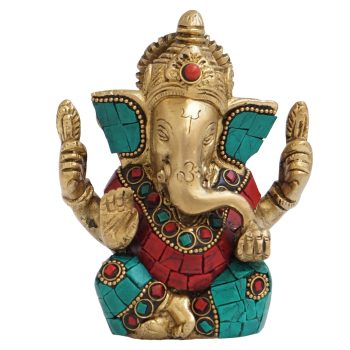 Brass Taj Lord Ganesha Idol in Stonework Finish Blue
