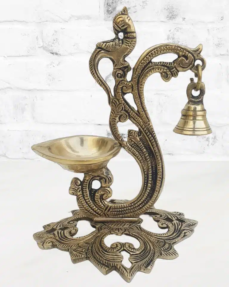 This Beautiful Peacock Diya is used for lighting purposes using a cotton ball. It is used in Hindu temples for lighting and prayer purposes.