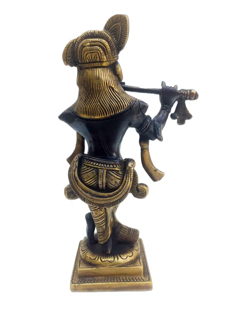 Beautiful Handmade divine lord Krishna Statue made of Brass metal with Antique Black golden finish. Brass Krishna Idols the Hindu Krishna standing playing flute is Symbol Of love and happiness. Their love is a common spiritual love affair between divine Krishna and his devotee Radha. Krishna is the supreme God Krishna is supposed to control with her deep love. Brass Krishna or Kanha statue can be used for pooja or to decorate your home. Krishna Statue are also very happy figures to have in your home. Lord Krishna is one of the most widely revered and popular of all Hindu deities. Lord Krishna is also known as Govinda, Mukunda, Madhusudhana, and Vasudeva. This Brass Krishna is perfect for home temple or can worship at the Janmashtami festival. Brass Govardhan Nath and Brass Bal Gopal Showpiece is the Best Gift for Marriage Anniversary, Parents, Mother’s Day, Wedding Return Gift, Birthday, House warming, Office.