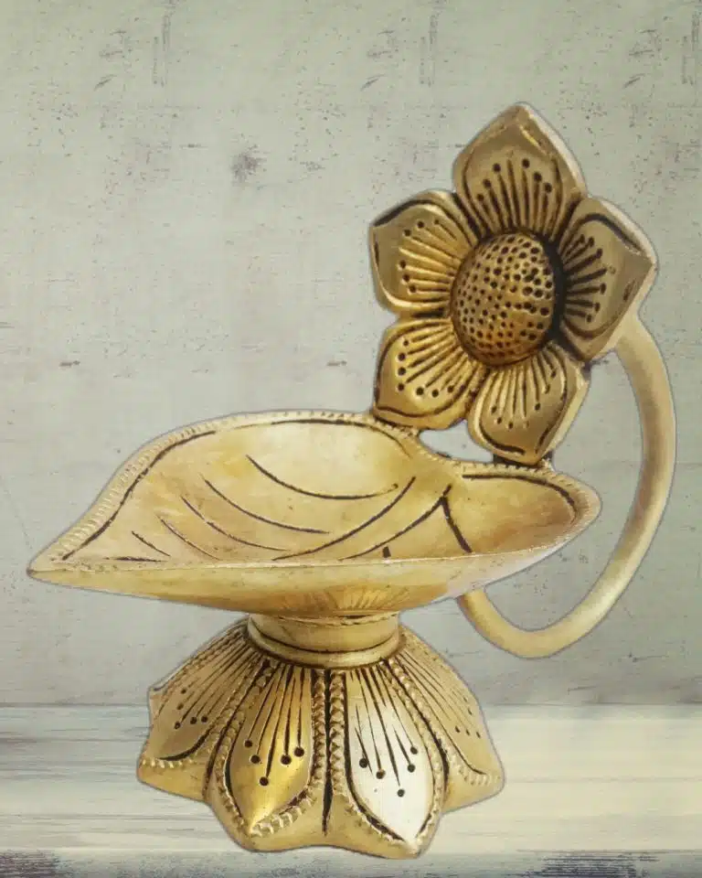 This is a traditional diya oil lamp made of brass metal. It looks very pretty and culturally ethnic. It has a wonderful finishing and polish.