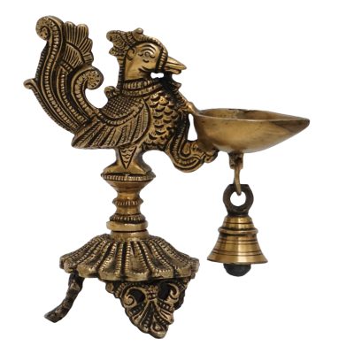 This beautiful peacock diya is used for lighting purposes using a cotton ball. It is used in hindu temples for lighting and prayer purposes.